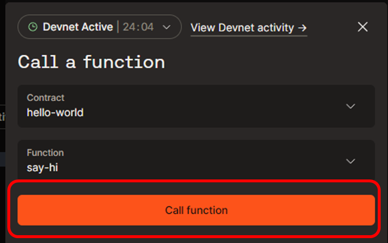 컨트랙트를 로컬 블록체인인 Devnet에서 실행하기 위해 Devnet Inactivte를 누릅니다.